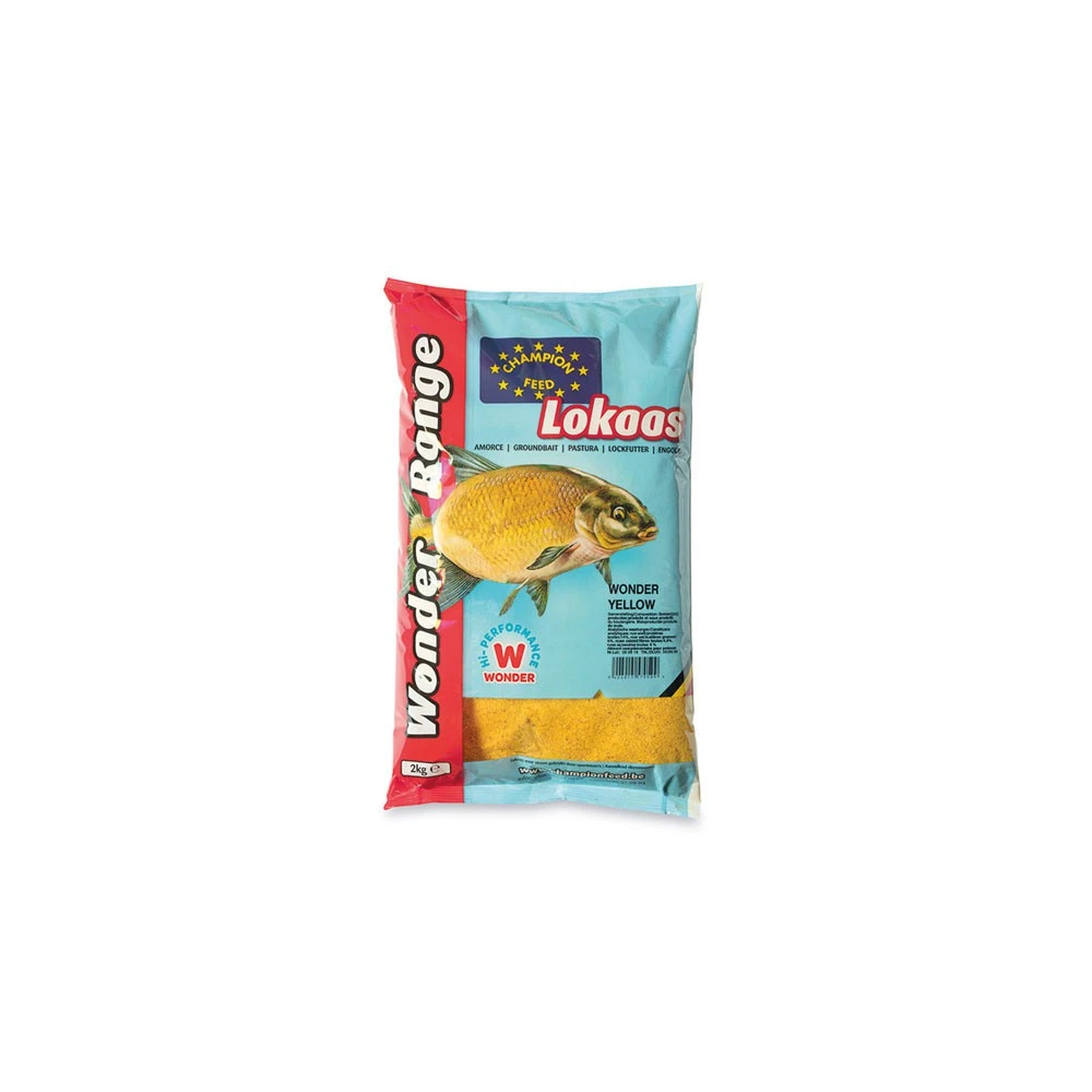 Champion Feed Wonder Yellow Grondvoer, is een enorme succesvolle lokaas is perfect om op alle waters te vissen. Door zijn hevige gele kleur, zijn uniek sterk fruitig aroma en zijn extra zoete smaak, zal het de vissen ongetwijfeld aantrekken. door de nieuwsgierigheid van de vissen en de hoogkwalitatieve ingrediënten zal men de ene vis na de andere aan de haak slaan.