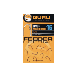 Guru LWG Feeder Special Eyed Barbed Hook Size 16, is een geweldige haak voor het feedervissen. Voorheen was deze populaire haak alleen beschikbaar met een Spade uiteinde, maar nu is de haak ook verkrijgbaar met een Eye uiteinde. Hier door is de haak veel beter te gebruiken op een hair rig. Daar naast is ook de draaddikte iets vergroot in vergelijking met het vorige model, hierdoor is de haak een stuk krachtiger geworden. De brede haakopening en de super scherpe, naar binnen gebogen haakpunt maken dit de ultieme feederhaak. Afgewerkt met een duurzame, zwarte nikkel coating. Verkrijgbaar in de maten: 10 – 12 – 14 – 16 – 18 – 20.