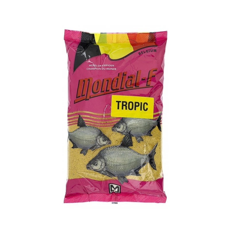 Mondial-F Grondvoer Tropic, is een hoogwaardig zoet lokvoer voor brasem en andere grote vijvervissen. Dit alom bekende Mondial-F recept met zwarte stippen, die een snelle werking waarborgen, dient zorgvuldig te worden aangemaakt.