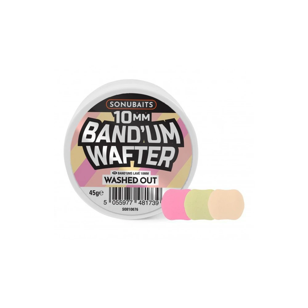 Sonubaits Band’ Um Wafter Washed Out 10 mm, zijn kleurige en zeer goed zichtbaar Band’ Um Wafters, blijft door het gewicht van de Haak net boven de bodem hangen waar door deze extra opvalt. Hun sterke geur trekt vrijwel elke vissoort aan. Is een perfect voorgevormde Dumbell, goed voor met het aasbandje en ook ideaal voor de Methodfeeder. De Band’ Um Wafters hebben tijdens hun testperiode massa’s vis op de kant gebracht en bleken al snel een geboren vanger te zijn.